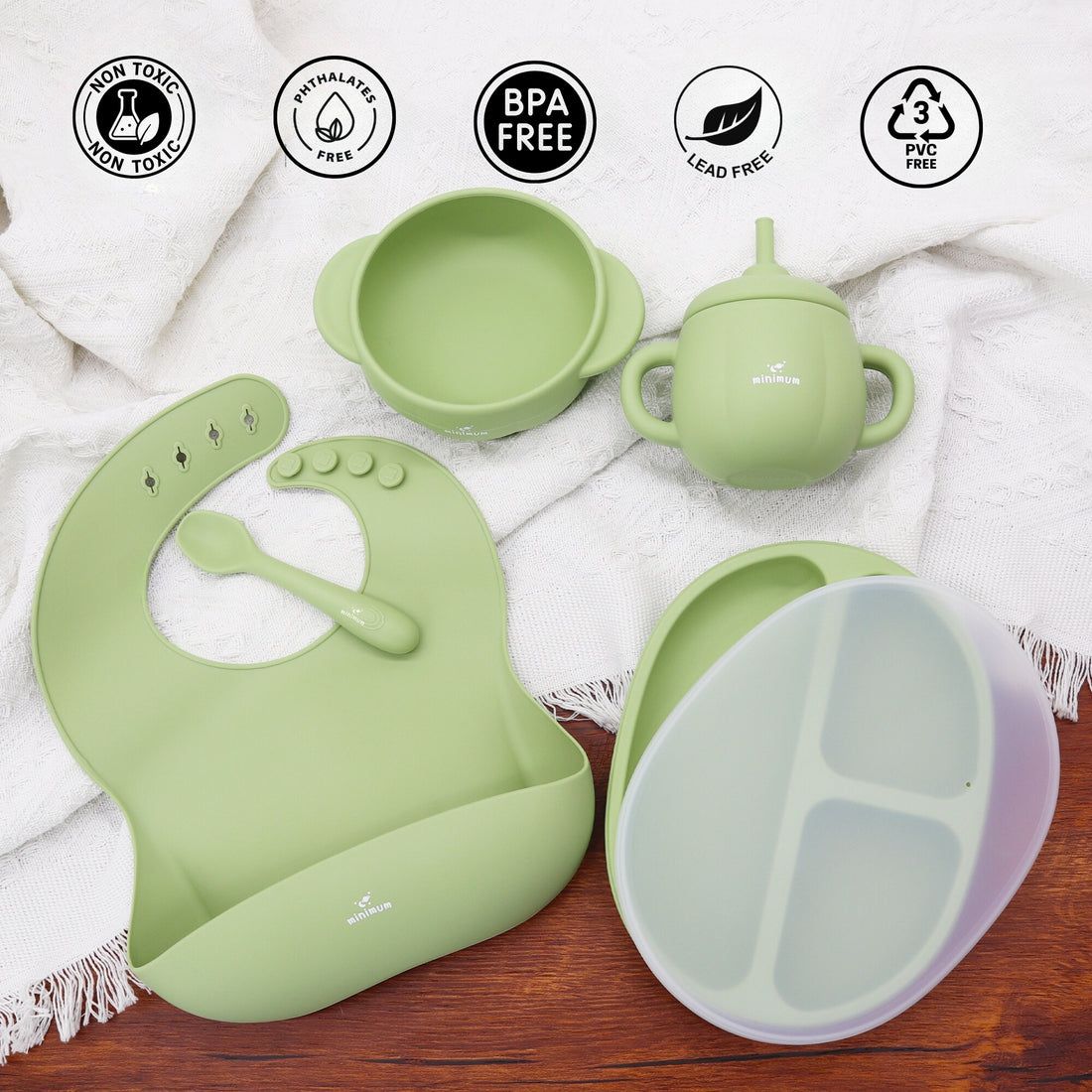 Premium Baby Essential Pack for Babies Upto 1.5 years | Feeding Combo Set | Bath Toy | Teethers Pack of 2 (Olive Green)