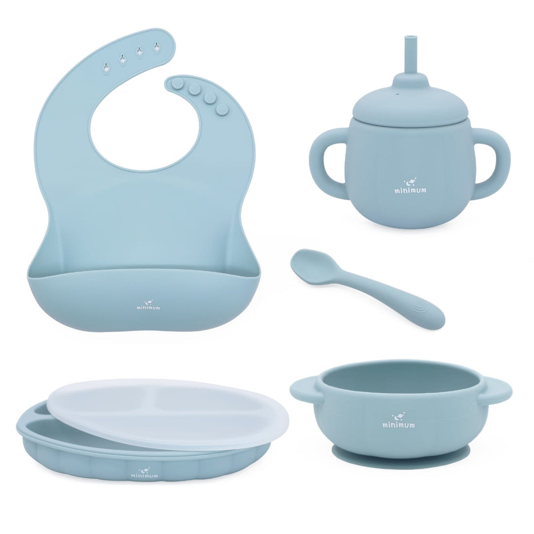Premium Baby Essential Pack for Babies Upto 1.5 years | Feeding Combo Set | Bath Toy | Teethers Pack of 2 (Dusty Blue )