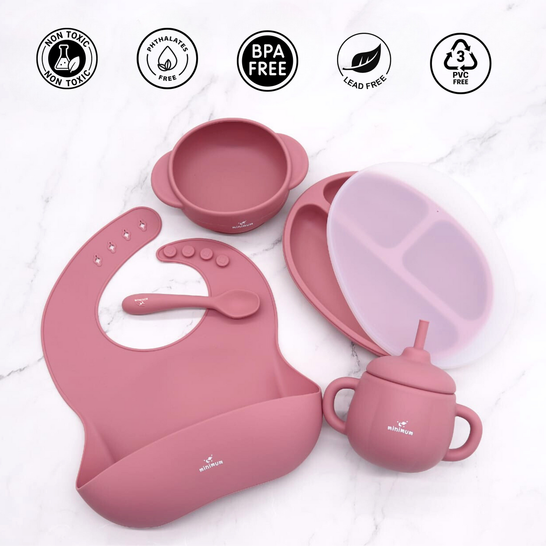 Premium Baby Essential Pack for Babies Upto 1.5 years | Feeding Combo Set | Bath Toy | Teethers Pack of 2 (Dark Pink )