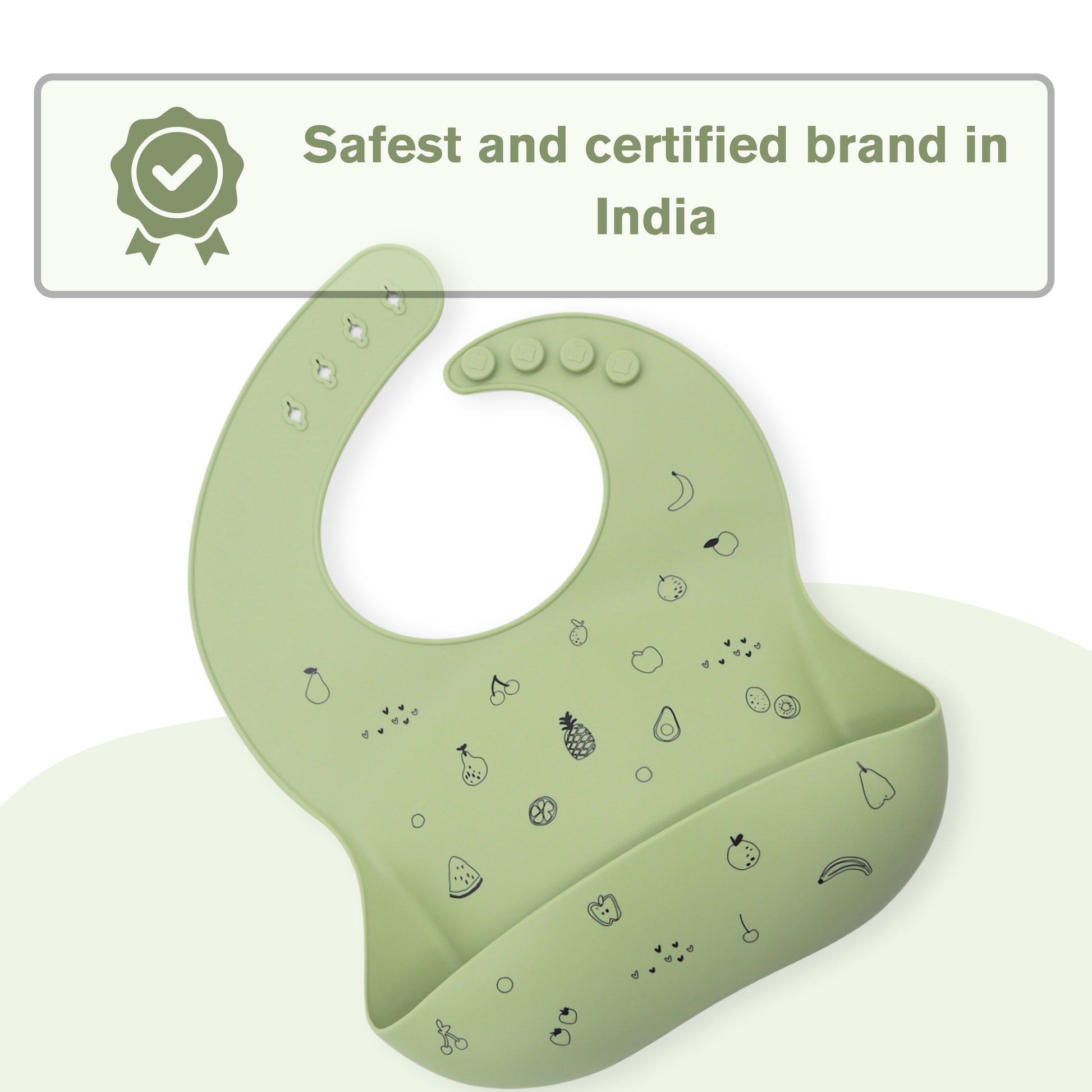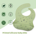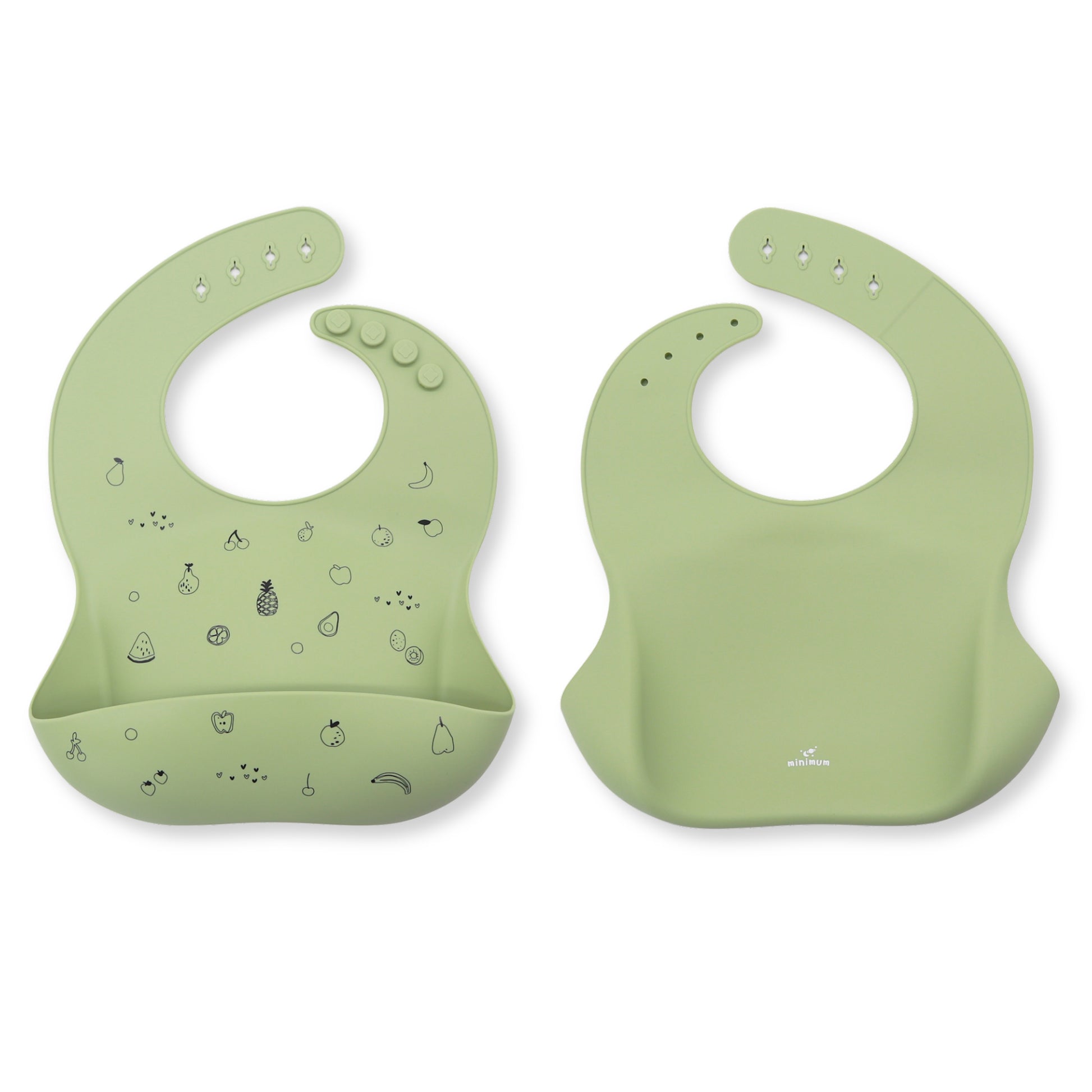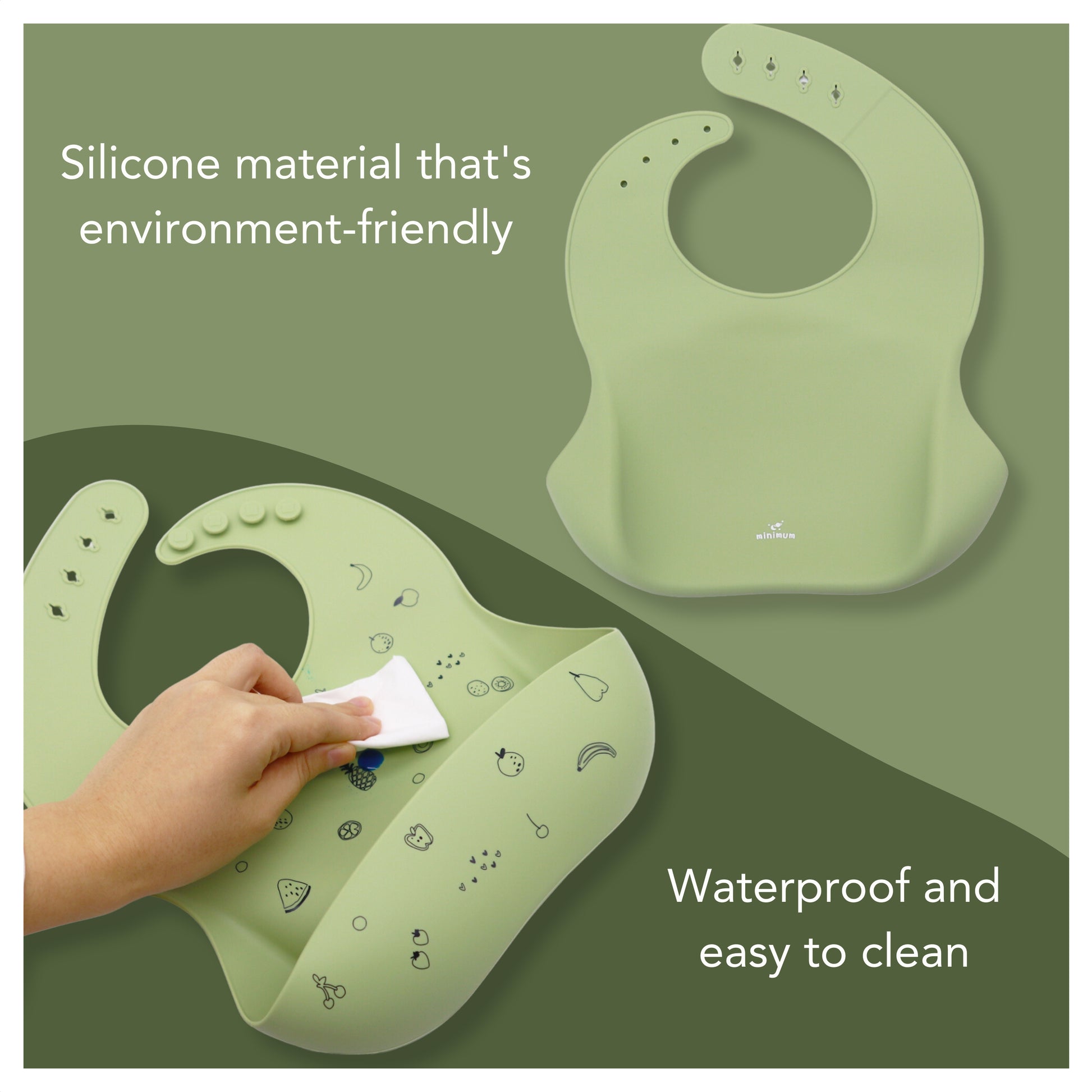 Minimum Premium Printed Silicone Bib for babies and toddlers (6M-4Y) | Adjustable neckline & wide crumb-catcher | Waterproof, flexible, dishwasher-friendly | (Green)
