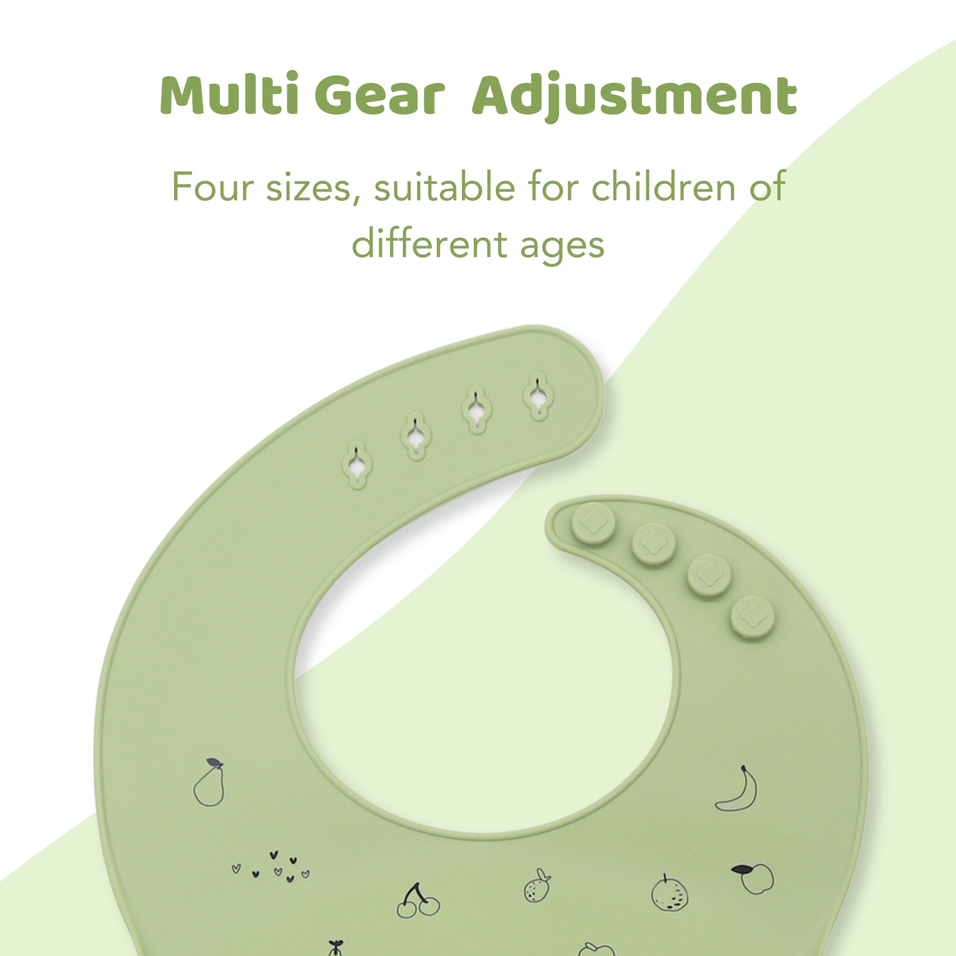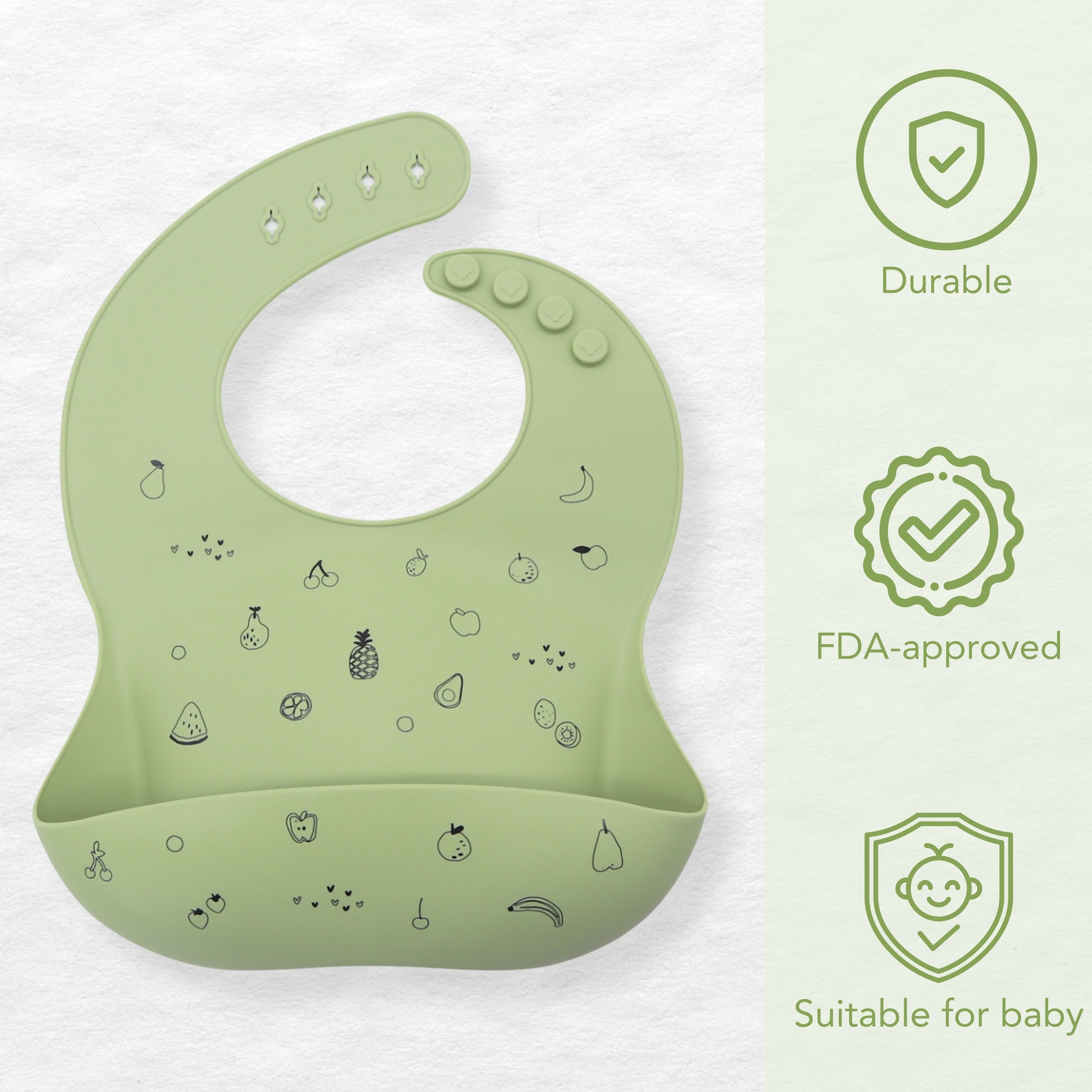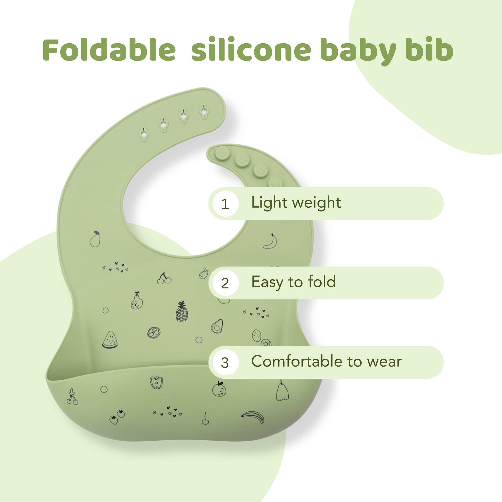 Minimum Premium Printed Silicone Bib for babies and toddlers (6M-4Y) | Adjustable neckline & wide crumb-catcher | Waterproof, flexible, dishwasher-friendly | (Green)