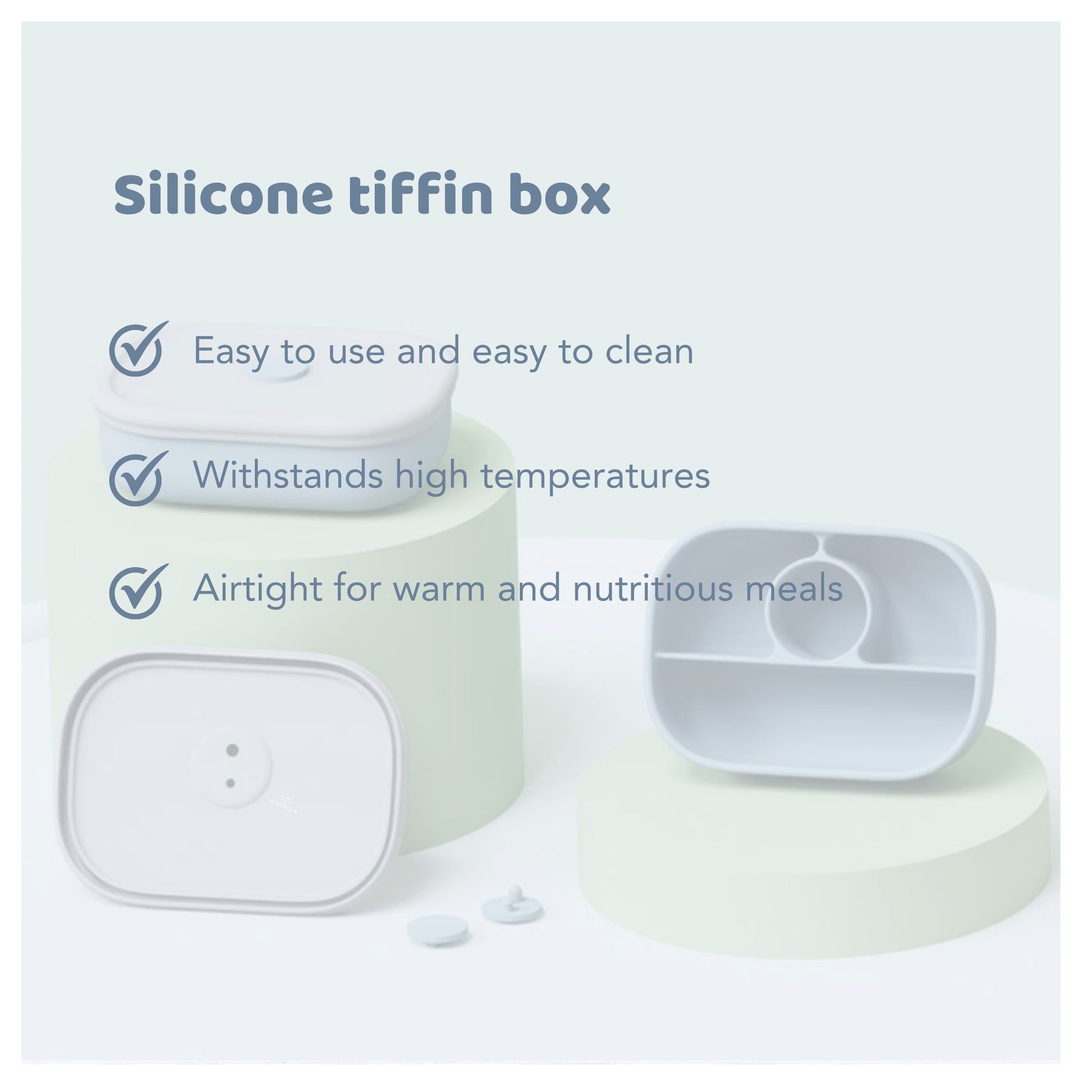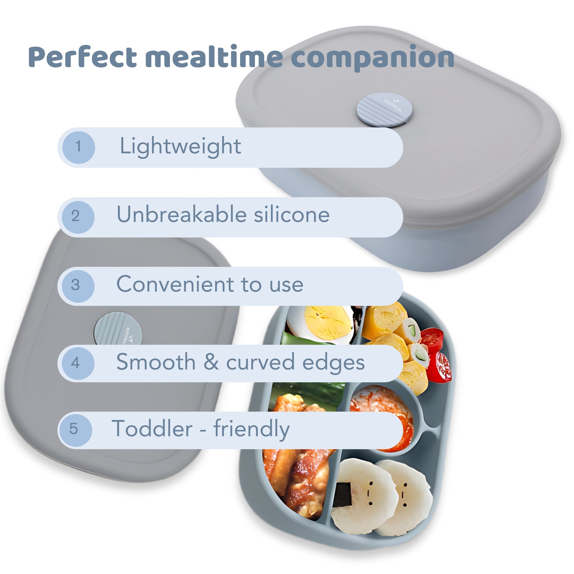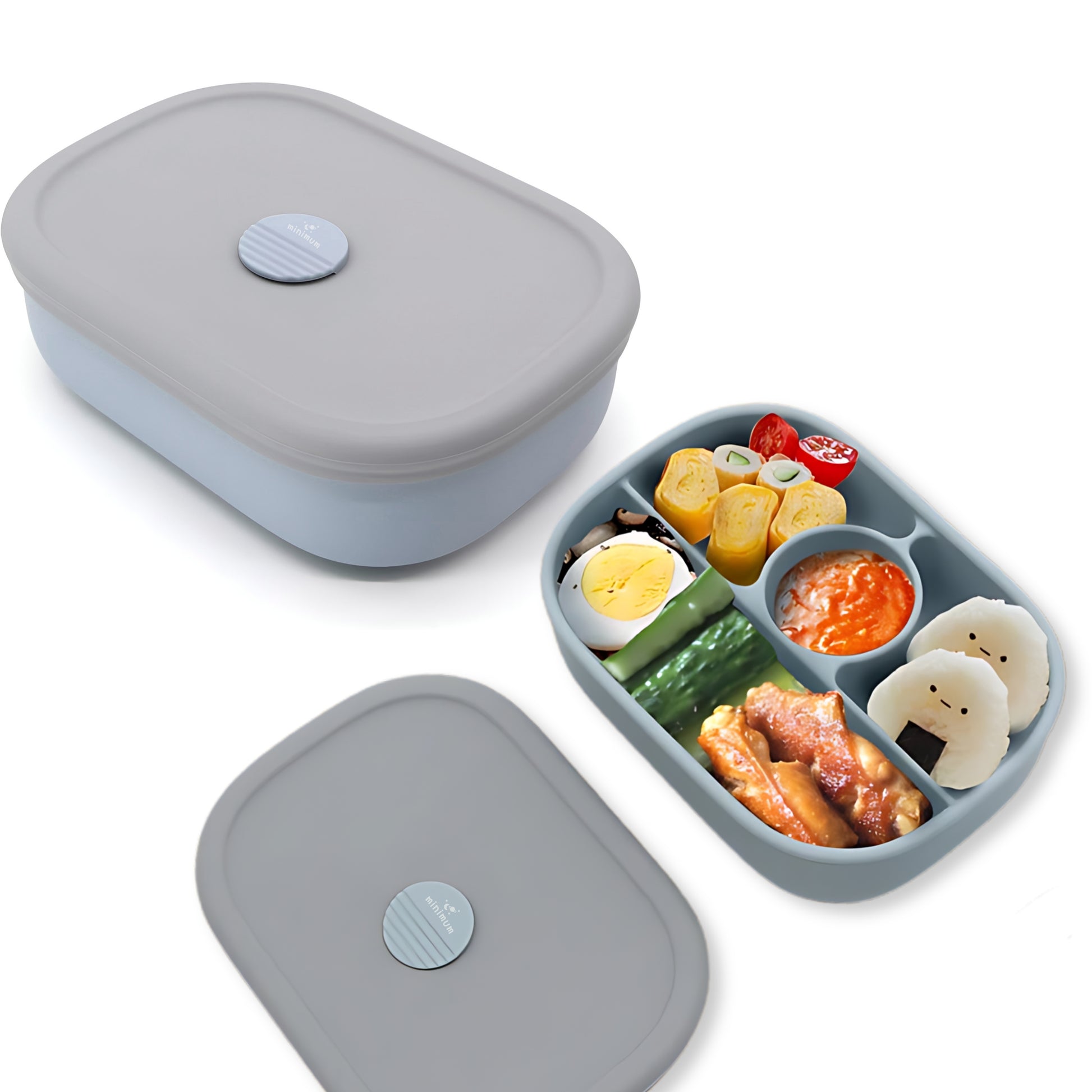MINIMUM Premium Silicone Lunch Box for Kids | 4 Compartment Food Storage Container | Toddlers Friendly | Lightweight, Durable Airtight Container | (Blue)