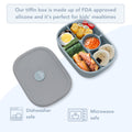 - Leak proof: This leak proof lunchbox features specially designed compartments and lids that keep food fresh and contained, preventing leaks and messy spills in your child's backpack.