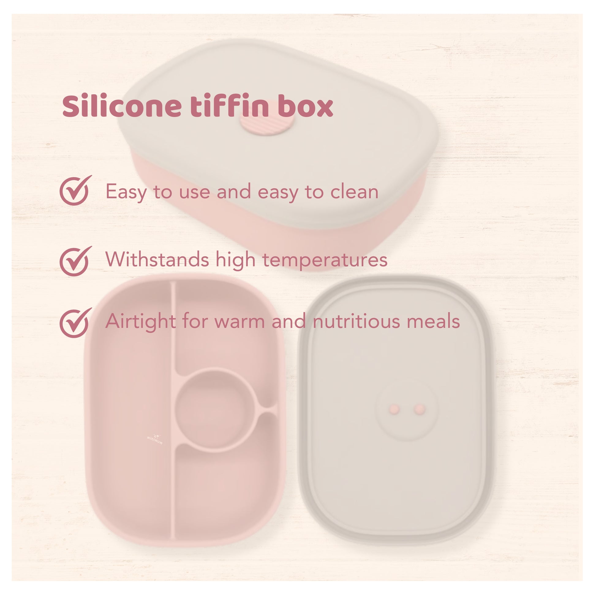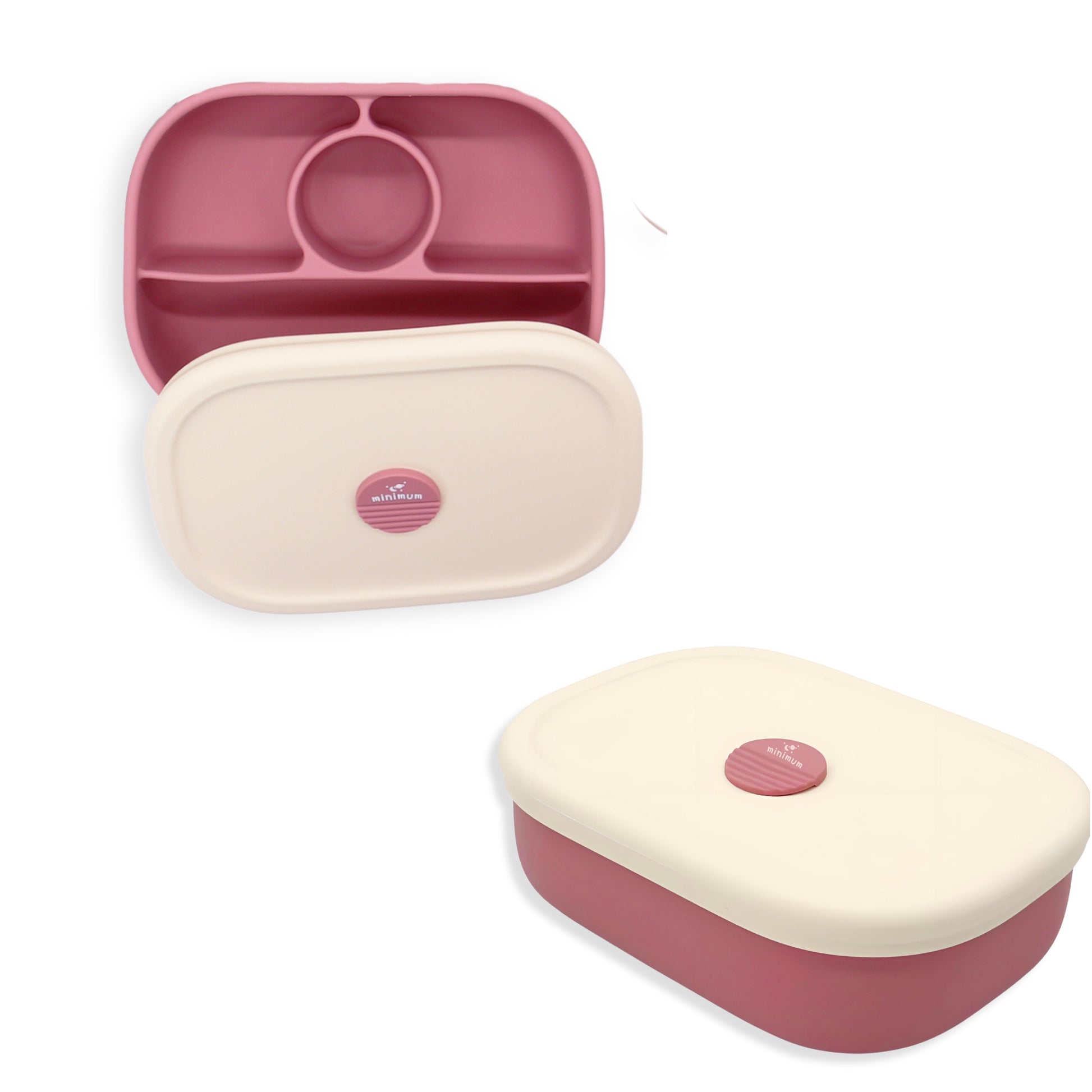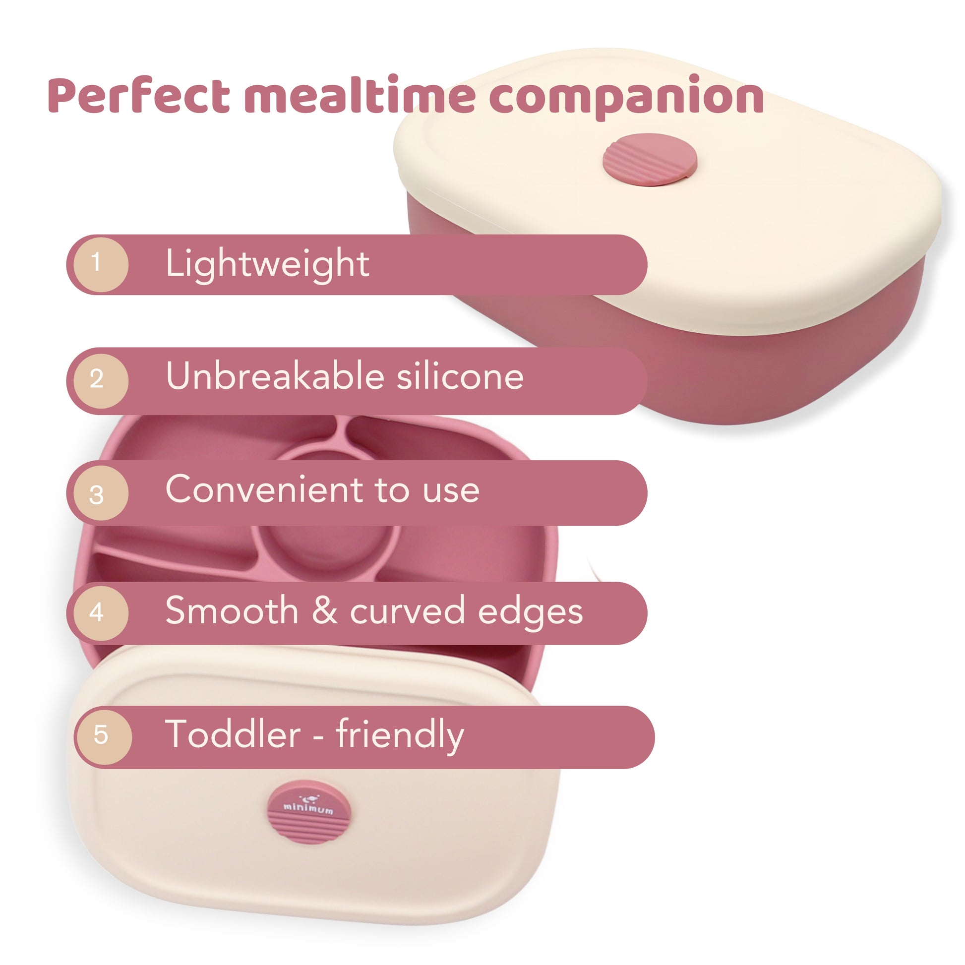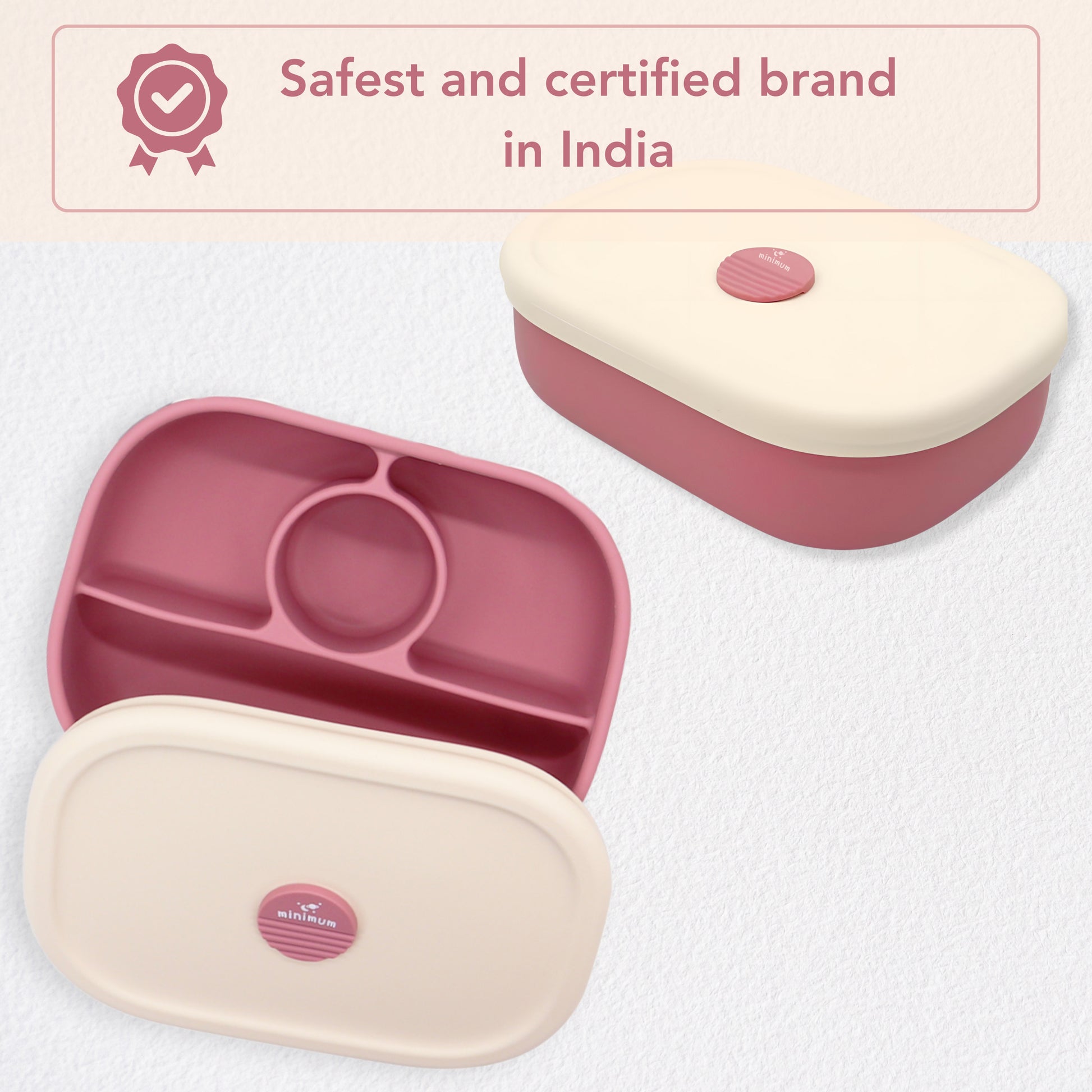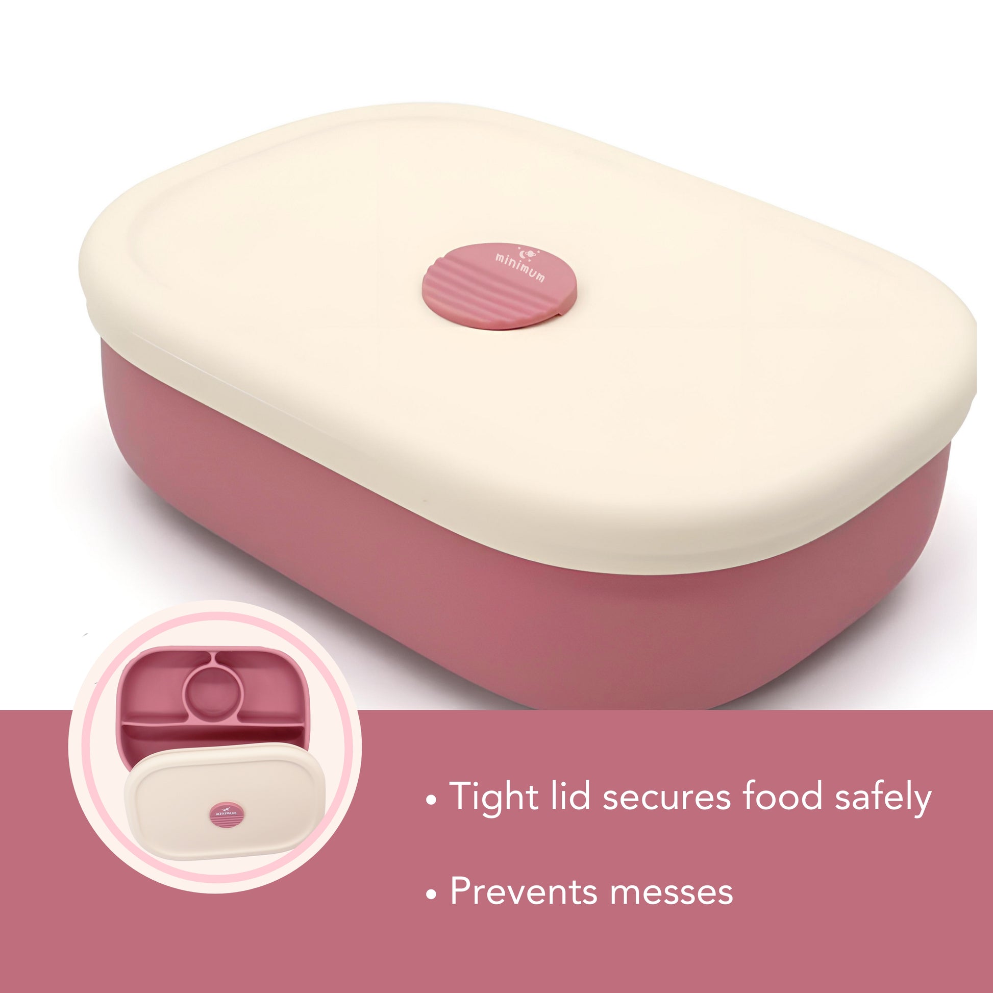 MINIMUM Premium Silicone Lunch Box for Kids | 4 Compartment Food Storage Container | Toddlers Friendly | Lightweight, Durable Airtight Container | (Pink)