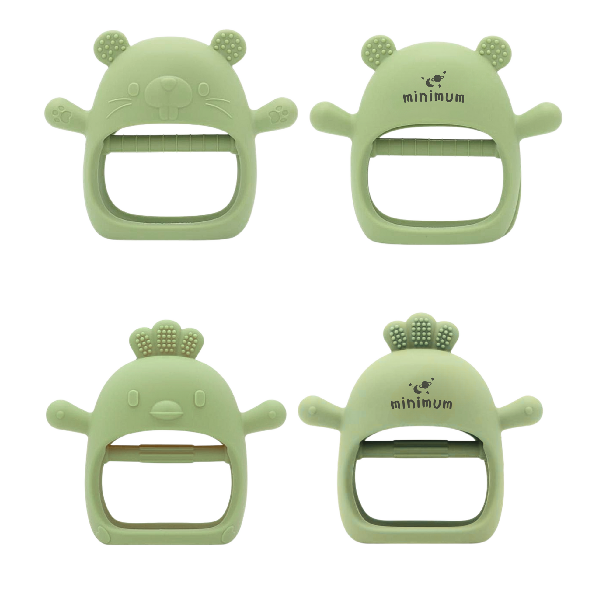 Minimum Silicone Teethers, Set of 2 Cute Animal Shapes Chicken and Marmot, Multicolour, Toddlers | Teething Toy | Pack of 2 | BIS Certified | Multicolor | 0-2 Years (Green)