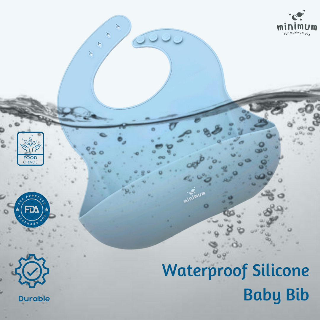 Premium Dusty Blue Silicone Bib for babies and toddlers (6M-4Y) | Adjustable neckline & wide crumb-catcher | Waterproof, flexible, dishwasher-friendly | (Blue)
