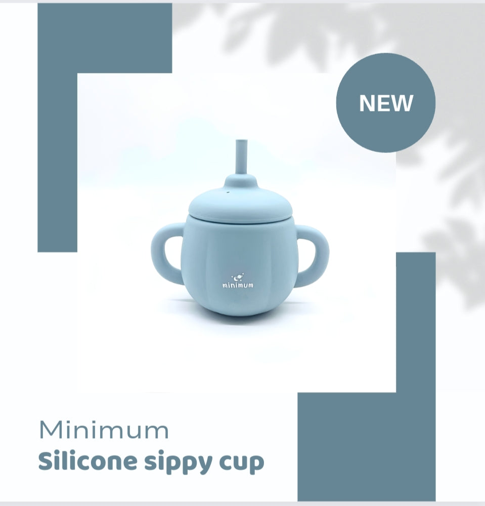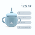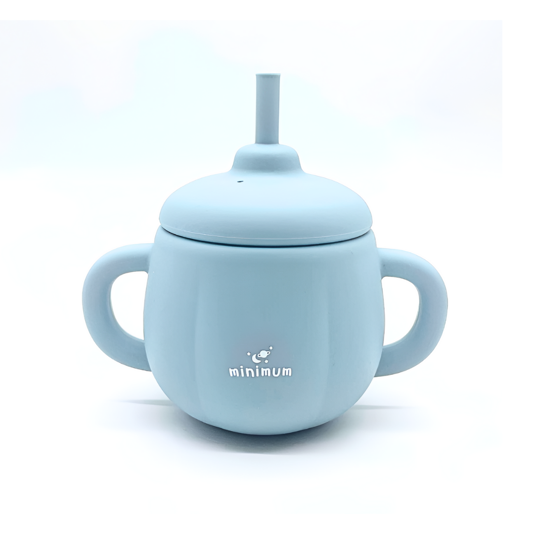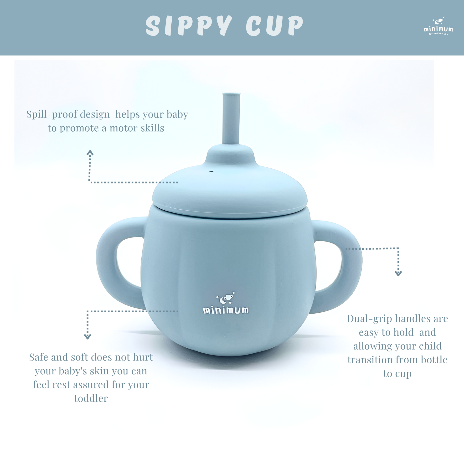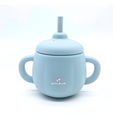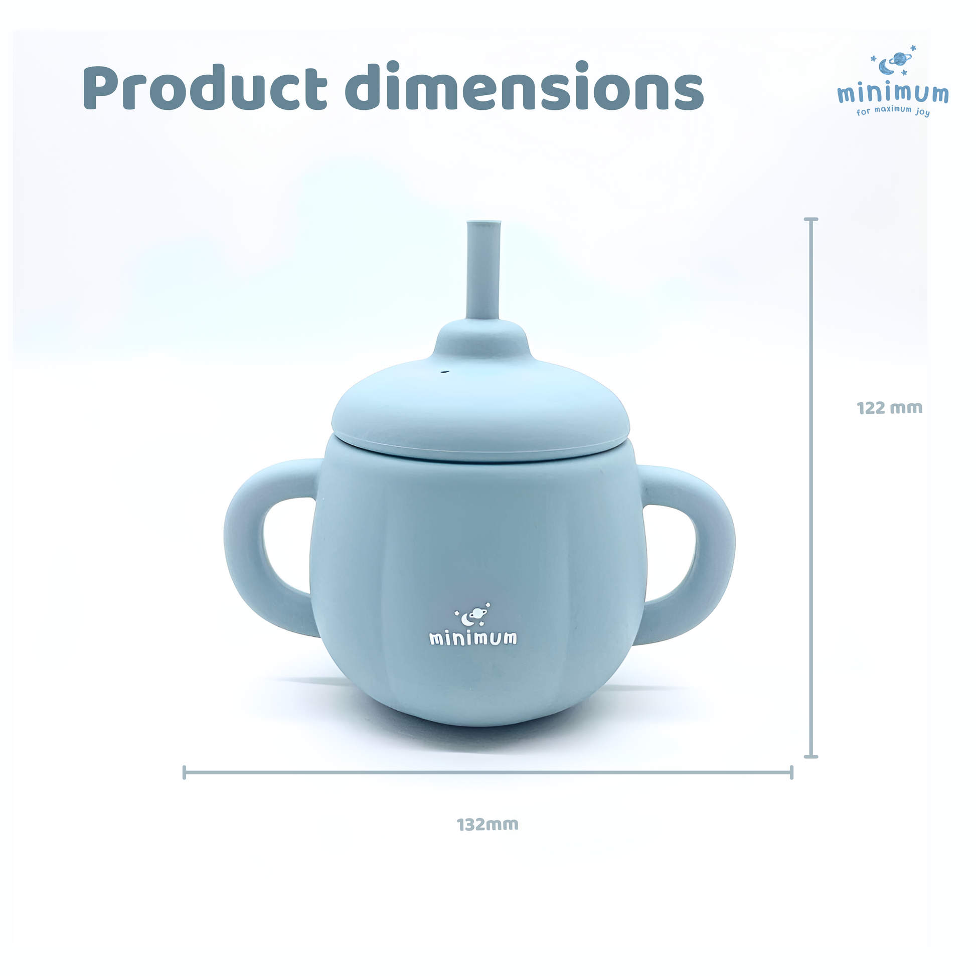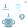 Premium Dusty Blue Silicone sippy cup (with straw & lid) for babies & toddlers (6M-4Y) | Dual-grip handles, spill proof design and base | BPA Free | Dishwasher & Microwave safe