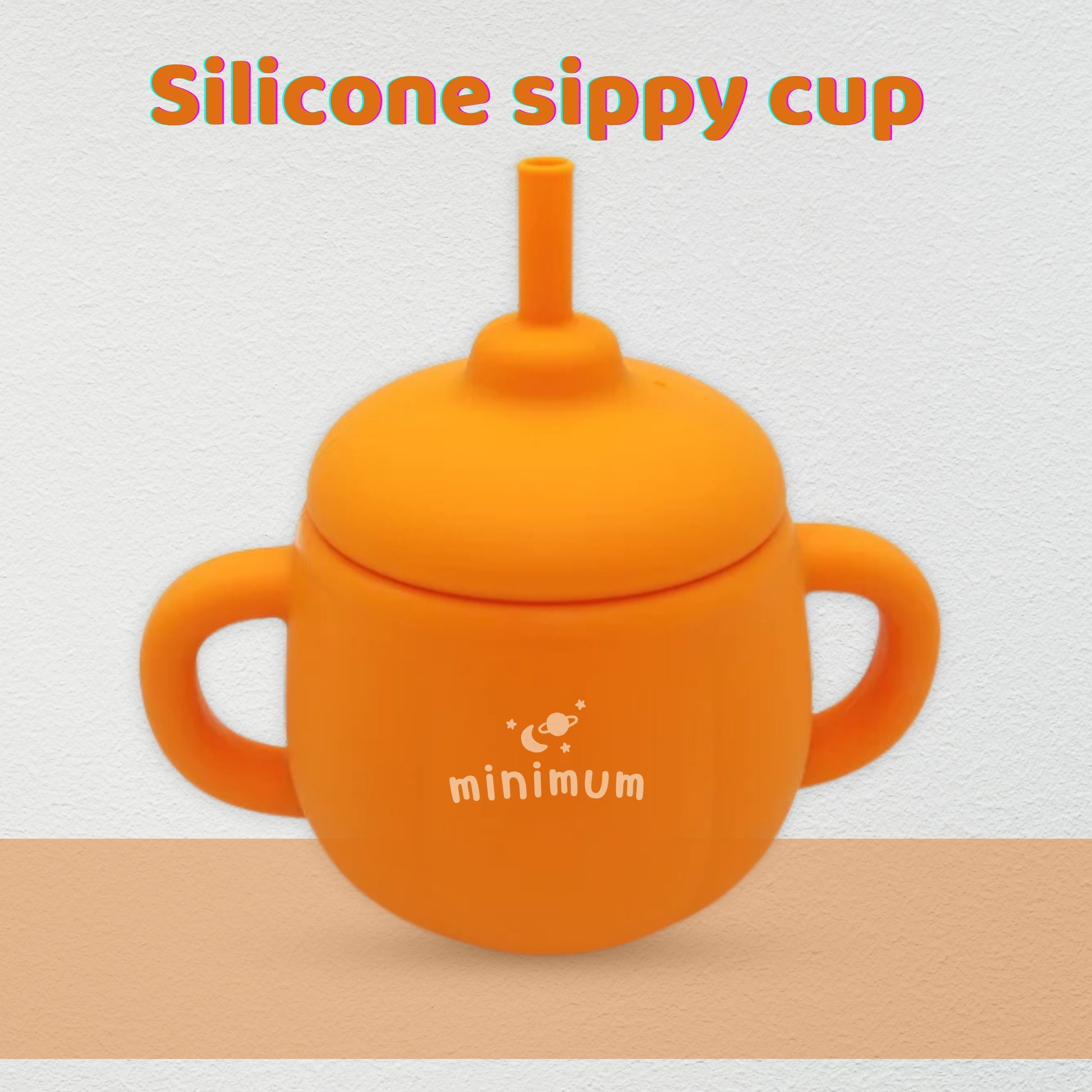 Premium Orange Silicone sippy cup (with straw & lid) for babies & toddlers (6M-4Y) | Dual-grip handles, spill proof design and base | BPA Free | Dishwasher & Microwave safe (Copy)